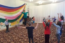 Дети подготовительной группы, под руководством музыкального руководителя и воспитателя, разучивают новый танец "Я от тебя убегу".