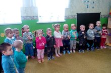 Беренче кечкенәләр төркме "Кошлар көне" нә әзерләнәләр. Алар тәрбиячеләре Рәзилә Рөстәм кызы белән берлектә "Тукран" хәрәкәтле - җыр өйрәнәләр.
