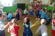 Дети подготовительной группы под руководством воспитательницы Харисовой Л. И. показали для младших групп сказку "Теремок".