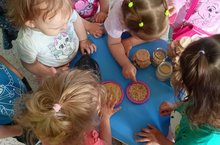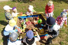 Дети младшей группы с удовольствием проводят время на песочнице. Строят разные замки, лепят куличи. Знакомятся с разными тактильными ощущениями, развивают мелкую моторику. У детей в процессе игр с песком развивается усидчивость и аккуратность