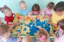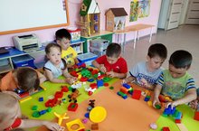 Дети во второй группы раннего возраста играли с кинетическим песком. Используя формочек, маленьких фигур лепили разных предметов,животных. Упражнения с волшебным песком расслабляют детишек. Игровые действия с мелкими предметами развивают работы с двумя руками, мелкую моторику. Вызывают положительные эмоции.