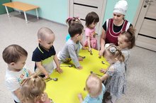 Во второй группе детей раннего возраста провели занятие на тему: "Наш младший воспитатель". Наблюдали и помогали младшему воспитателю. Цель данного занятия; воспитывать уважение к труду младшего воспитателя.