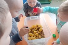 Для сенсорного развития детей во второй группы раннего возраста используем различные дидактические игры. Одна из них-сенсорная коробка. Сенсорную коробку сделали используя разные крупы, макароны, разноцветные шары .Играя ребёнок может трогать, складывать, перекладывать, прятать, пересыпать-иследовать без ограничений. Прикасаясь к предметам дети обогащают свой тактильный опыт. С детьми практиковали оружейные действия. С ложкой, шумовкой пересыпали крупу из одной посуды в другую. Отыскивали среди макарон небольшие игрушки. Играя дети закрепили знания о цвете, величине и о форме.