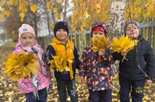 Зурлар төркеме балалары белән көзге табигатьнең матурлыгына соңландык һәм балалар яфрактан букетлар ясадылар.