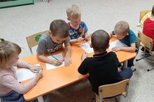 Икенче кече яшьтәге балалар төркемендә көз бәйрәменә әзерлек бара, балалар бию өйрәнә.