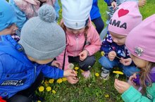 Дети младшей группы продолжают знакомиться с растениями родного края (одуванчики). Наблюдение за тем, как желтый цветочек, растущий на площадке нашего сада, превращается в белый пушок, а в нем появляются маленькие "парашюты" - семена одуванчика, вызывало у детей любопытство и удивление.