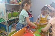 Мәктәпкә әзерлек төркеме пыяла ком савытында ясалган татар халык орнаментларын, төрле төстәге ком белән буяп, бизәделәр. Мондый эшчәнлек балалар өчен кызыклы һәм үзенчәлекле булды.