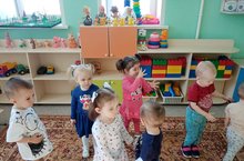 Дети первой младшей группы с удовольствием играют друг с другом в татарские народные игры.