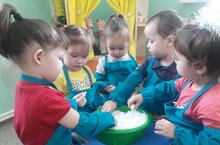 "Кызыклы ачышлар" проекты кысаларында беренче кечкенәләр төркеме балаларын кар һәм аның үзлекләре белән таныштыру.