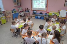 В подготовительной группе прошло занятие с использованием интерактивного стола. Дети учатся различать цвета, формы, а также через игры у детей улучшается логическое мышление, память, повышается внимание и хорошо влияет на моторику рук.