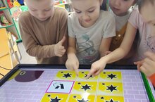 Мәктәпкә әзерлек төркеме. Балаларга белем бирү процессында интерактив өстәл үзенен күп төрле фукнцияләре белән нәтиҗәле эшләр күрсәтә. Бала төс, формаларны аера белергә өйрәнә, шулай ук уеннар аша баланың логик фикерләве, хәтере яхшыра, игьтибары арта һәм кул моторикасына яхшы йогынты ясый.