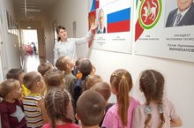 Мәктәпкә әзерлек төркеме балалары Рәсәй Федерациясе һәм Татарстан Республикасы президентлары, флаглары, герблары белән таныштылар. Сөйлэшү вакытында башка символлар арасыннан танып белергә, балаларның белемнәрен ныгытырга, үз халкыңа карата горурлык һәм хөрмәт хисе тәрбияләргә дип анлатыды.