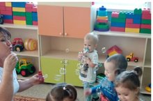 Для самых маленьких друзей научный фокус: запуск мыльных пузырей. В этом фокусе ребята участвовали сами, радовались.