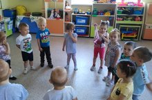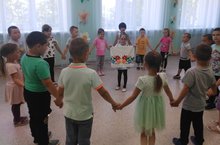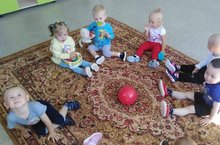 В рамках года родных языков и народного единства дети первой младшей группы учились ловить мяч. Это развивает мелкую моторику пальцев. И учит детей ориентироваться в пространстве.