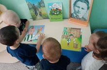 В рамках Года родных языков и народного единства с детьми первой младшей группы начало ознакомления с творчеством известного татарского писателя Г. Тукая. Просмотр иллюстрации к произведениям. -