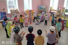 Дети старшей группы познакомились с татарской народной игрой "Яулык салыш". Также они попробовали сыграть проверив свою ловкость. -