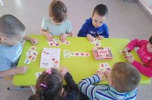 Туган телләре һәм халыклар бердәмлеге елы кысаларында, зурлар төркеме балалары татар орнаментлары белән танышуны дәвам иттеләр. Күңелле домино уены ярдәмендә татар халык орнаментларын ныгыттылар. Бу уен игътибарлылыкны, күзәтүчәнлекне, фикерләүне камилләштерә.