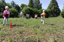 В средней группе в рамках летнего оздоровительного плана "Весёлые старты". Развиваем быстроту и выносливость детей. -