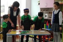 Бүген зурлар төркеме балалары (тәрбиячеләре И.Р.Хабирова) рәсем эшчәлегендә татар милли киемнәрен бизәргә өйрәнделәр.