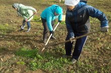 Коллектив МБДОУ "Кояшкай" организовал работу по уборке территории. Младшие воспитатели и технический персонал очищают территорию от опавших листьев. Также идет работа по уборке огорода.