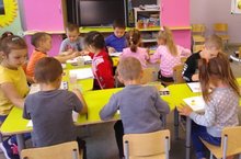 Детям очень нравится рисовать кистью и красками. На занятии по рисованию по теме "Разноцветные шары" воспитатель Ф.Ганиева учит детей правильно держать кисть, изображать предметы округлой формы одним движением руки, продолжает знакомить с основными цветами (желтый, зеленый, синий, красный), развивает эстетическое восприятие.
