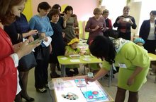 27 апрель көнне районыбызга Чакмагыш районы педагоглары кунакка килде. "Кояшкай" кунакларга бакча буйлап экскурсия үткәрде, күргәзмә тәкъдим итте, ачык дәрес күрсәтте. Беренче квалификацион категорияле тәрбияче Индира Хәбирова кунакларны традицион булмаган рәсем ясау - "Эбру" методикасы белән таныштырды. Балаларның суда ясап кәгазьгә, тәрбияченең - тукымага төшерелгән рәсемнәре бик кызыксындырды кунакларны, алар рәсемнәрне истәлек итеп үзләренә алып калдылар, бакчаның төзеклегенә, матурлыгына сокланып кайтып киттеләр.