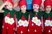 Для успешного выступления воспитанниц на фестивале детского творчества "Яшь бөреләр" Багауова Гузелия Ягфаровна, сотрудник детского сада, шьет костюмы земляничек к вокальному номеру "Җиләкләр".