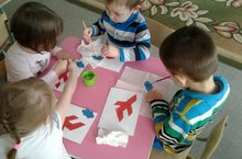 Мөслим "Кояшкай" бакчасы балалары 23 февраль - Ватанны саклаучылар көне уңаеннан әтиләренә, бабайларына, абыйларына үз куллары белән бүләкләр ясыйлар.