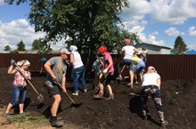 Идет завершающая работа по благоустройству территории МБДОУ "Кояшкай". Коллективы детских садов "Куянкай" (Мелля-Тамакский детский сад), "Аллюки" (Верхнетабынский детский сад), "Баланкай" (Баланнинский детский сад), "Чебурашка" (Михайловский детский сад) и "Зернышко" (Шуганский детский сад) оказали серьезную помощь в работе на территории детского сада.