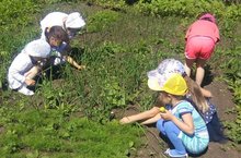 Балалар өлкәннәр белән берлектә бакча территориясендә хезмәт куялар. Төркемнәрнең тәҗрибә участокларында эш нәтиҗәле бара.