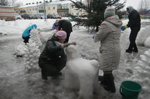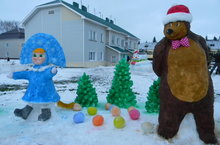 Коллектив украсил территорию центральной елки снежной композицией "Маша и медведь". Любимые мультипликационные персонажи из снега радуют детей и взрослых.