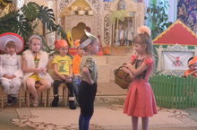 Тәрбияче Роза Исламова җитәкчелегендә зурлар төркеме балалары "Кәҗә кергән бакчага" экиятен сәхнәләштереп уйнадылар. Тамашаны балалар бик тә кызыксынып карадылар. Соңыннан тәрбияче экиятнең эчтәлеге буенча балалар белән эңгәмә уздырды.