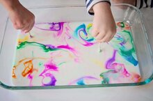 Уртанчылар төркемендә сөт, буягычлар һәм юу чаралары белән тәҗрибә . Бу фокусның сере нәкъ менә сөттә майларны тотып торучы химик бәйләнешләрне көчсезләндерүче һәм сөттә өске тартылуны киметүче (гади итеп әйткәндә, майларны җимерә) савыт-саба юу чарасы тамчысында. Көчле химик реакция бара, без аны азык буяулары ярдәмендә күзәтә алабыз. Юу чарасы сөт белән тигез кушылгач (өлешчә эреп, өлешчә май молекулаларына берегеп), реакция әкренәя һәм туктый.
