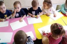 Беренче кечкенәләр төркемендә тәрбияче Р.Габдулхакова балаларны пластилин белән әвәләргә өйрәтә. Балаларга әвәләү бик күңелле, кызыклы шөгыль. Бүген балалар пластилин кисәгеннән агачның кечкенә ботакларын әвәләделәр.