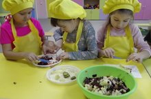 Мөслим "Кояшкай" балалар бакчасының мәктәпкә әзерлек төркеме балалары тәрбияче И.Хабирова белән винегрет ясау серләренә өйрәнделәр. Үз кулларын белән эзерләнгән ризык бик тә тәмле була икән.