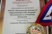 Подведены итоги Всероссийского конкурса "Образцовый детский сад 2018-2019". Среди 98838 детских садов Российской Федерации, принявших участие в конкурсе, наш "Кояшкай" вошел в 1000 лучших детских садов России и награжден Дипломом победителя, медалью и Грантом.