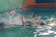 Мөслим авылы "Кояшкай" балалар бакчасының мәктәпкә әзерлек төркеме балалары бассейнда булдылар. Гимназиянең йөзү буенча инструкторы балаларны уен формасында төрле йөзү алымнарына өйрәтте.