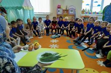 Дети средней группы познакомились с бытом татарского народа, повторили знани о старинной и современной посуды.