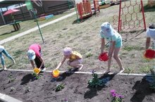 Икенче кечкенәләр төркеме балалары, бакчачылар атнаклыгы уңаеннан, тәрәз төбендә үстергән помидорларын урамга күчереп утырттылар. Шулай ук редиска да чәчтеләр. Көн саен су сибеп үстерергә уйлап торалар.