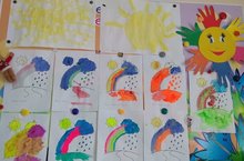 "Күбәләк" балалар бакчасының уртанчылар төркеме балалары белән традицион булмаган алымнар кулланып,кояш ясадык.Салават күпер,Болыт,Яңгыр,Кояшның якын дуслары икәненә төшендек.Сары төскә өстенлек биреп, сары Куянны сары лимон белән сыйладык.