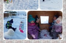 "Күбәләк" балалар бакчасының мәктәпкә әзерлек төркеме балаларының саф һавадагы кышкы уеннары бик күңелле үтә. Бергәләп кар ташып, тау ясап, аңа атна дәвамында су сибеп тордык.Менә тавыбыз әзер!Рәхәт тә соң шуарга, ледянкалар булганда!