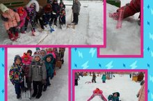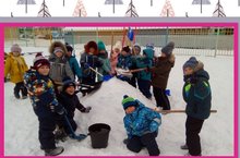 Дети подготовительной группы МБДОУ "Кубэлэк" на прогулке.Весело проводим время:очищаем веранду и дорожки от снега, "закапываем" друг друга,измеряем глубину снега.