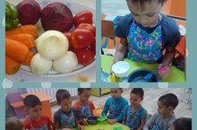 "Күбәләк" балалар бакчасының мәктәпкә әзерлек төркемендә атналык тема "Ашамлыклар һәм савыт-саба" Бүген малайлар белән "Яшелчә ашы" пешердек".