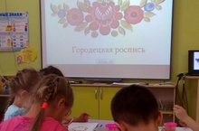 В МБДОУ "Кубэлэк" рисование в подготовительной группе.Дети продолжают знакомиться с декоративным народным творчеством.Учатся выделять характерные особенности городецкой росписи,создавать узоры по ее мотивам.
