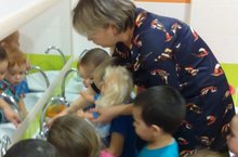 Iнче кечкенәләр төркеме балалары әйләнә-тирә белән таныштыру шөгылендә "Юыну бүлмәсендә" темасын үтәләр.