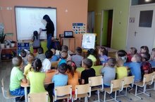 Уртанчылар төркеме балалары интерактив такта белән һәрдаим эшлиләр.Интерактив такта куллану дәресләрне тагы да кызыклы итәргә ярдәм итә.