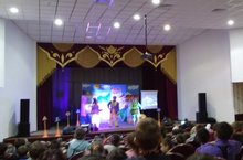 Без - Тукай оныклары 27.04.2016 Сабир Өметбаев исемендәге Минзәлә татар дәүләт драма театры коллективы Мөслим сәхнәсендә. Монда алар безнең балаларыбызга татар халкының бөек шагыйре Габдулла Тукайның "Тапкыр Кәҗә турында әкият” дип исемләнгән курчак театрын күрсәттеләр. Балалар спектакль гына карап калмадылар,шулай ук төрле конкурсларда да катнаштылар