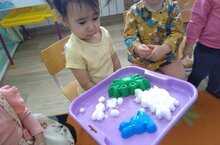 С детьми первой младшей группы провели эксперименты со снегом и выяснили, что из него можно сделать разные фигуры, что он тает в тепле, холодный на ощупь.