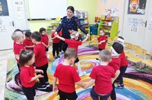 Бүген физкультура эшчәнлегендә мәктәпкә әзерлек төркеме балалары ике командага бүленеп, "Көчлеләр" һәм "Җитезләр" командаларына, ярыштылар.