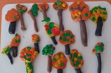 С детьми старшей группы лепили "Осеннее дерево". Умение видеть красоту осенней природы эстетическое и экологическое воспитание; продолжение знакомства с растущими на родине деревьями.